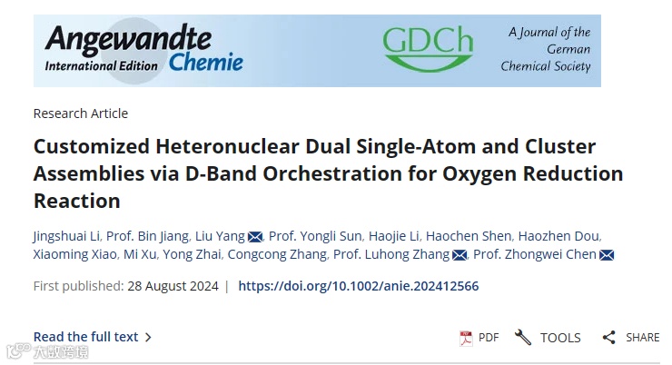 基于此,中国科学院大连化物所陈忠伟院士/杨柳副研究员/天津大学张吕鸿教授在国际期刊Angewandte Chemie International Edition发表题为《Customized Heteronuclear Dual Single-Atom and Cluster Assemblies via D-Band Orchestration for Oxygen Reduction Reaction》的研究论文。文章第一作者为李敬帅博士。