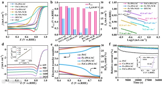 图3:FeCo-DSA/AC碱性ORR性能。