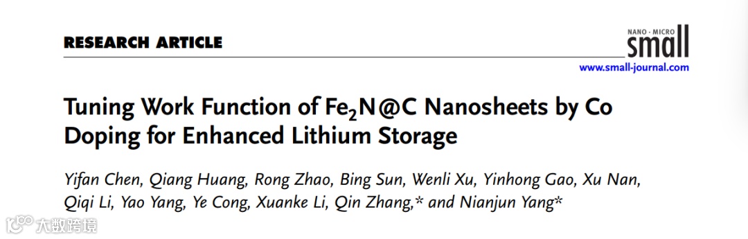 近日,来自武汉科技大学的张琴副教授与哈瑟尔特大学的杨年俊教授合作,在国际知名期刊Small上发表题为“Tuning Work Function of Fe2N@C Nanosheets by Co Doping for Enhanced Lithium Storage”的研究论文。