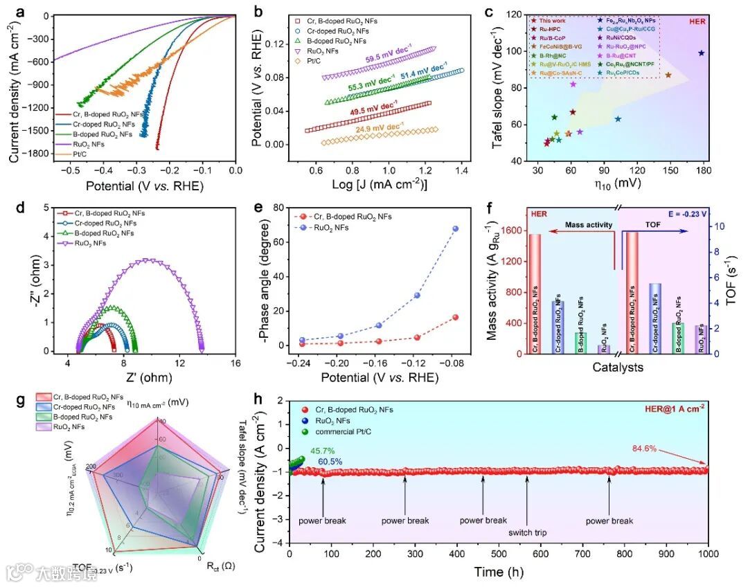 图2 Cr,B共掺杂RuO2纳米纤维的酸性析氢性能研究。