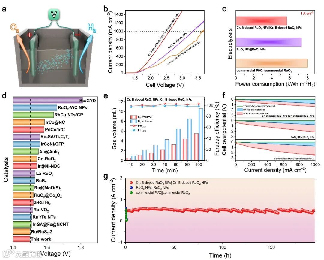 要点五:Cr,B共掺杂RuO2纳米纤维的全解水性能分析