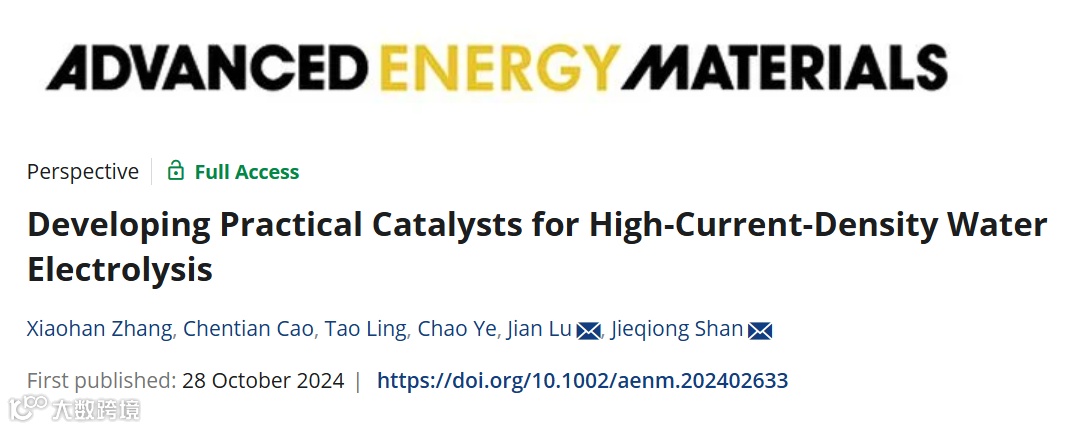 近日,来自香港城市大学的吕坚教授与单洁琼教授合作,在国际知名期刊Advanced Energy Materials上发表题为“Developing Practical Catalysts for High-Current-Density Water Electrolysis”的观点文章。该观点文章对比了工业电解水技术的关键参数和性能指标,涵盖了碱性电解槽、阴离子交换膜电解槽以及质子交换膜电解槽。随后梳理了在高电流密度条件下析氢和析氧反应催化剂的代表性进展,分析了决定催化剂在高电流密度下性能表现的关键因素,包括本征活性、机械/化学稳定性及传质。本文还提出了催化剂从实验室阶段过渡到工业应用阶段的流程,为实现催化剂的大规模应用开发提供了指导性建议。