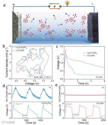 分子胶束聚集体电解质实现稳定的电化学质子存储
