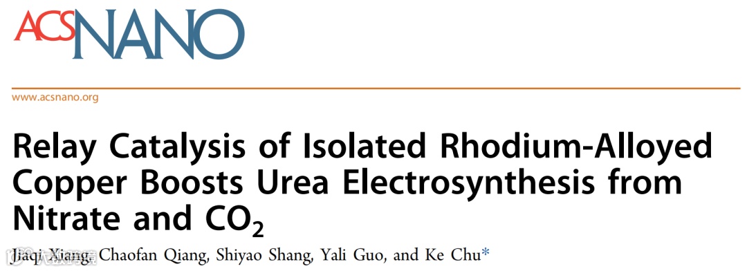 Jiaqi Xiang, Chaofan Qiang, Shiyao Shang, Yali Guo, Ke Chu*. Relay Catalysis of Isolated Rhodium-Alloyed Copper Boosts Urea Electrosynthesis from Nitrate and CO2. ACS Nano.