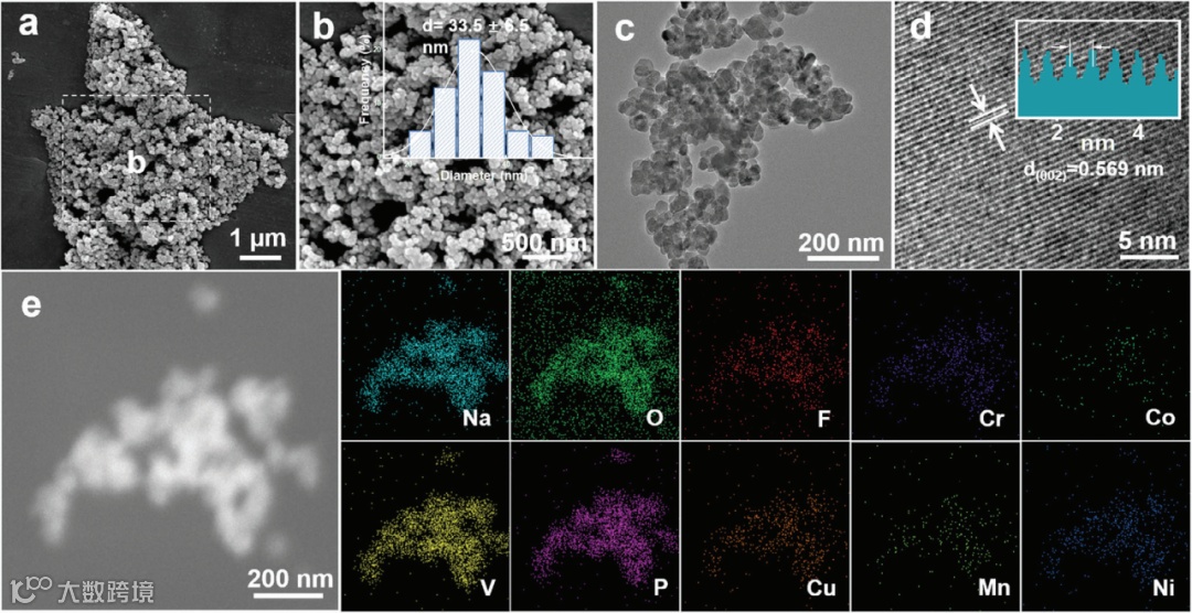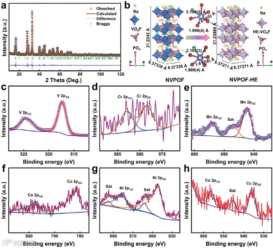图1和图2.HE掺杂NVPOF的结构和成分表征