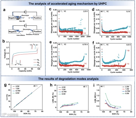 图3. 基于超高精度库伦测试仪(UHPC)和电化学无损诊断的加速老化机理分析。