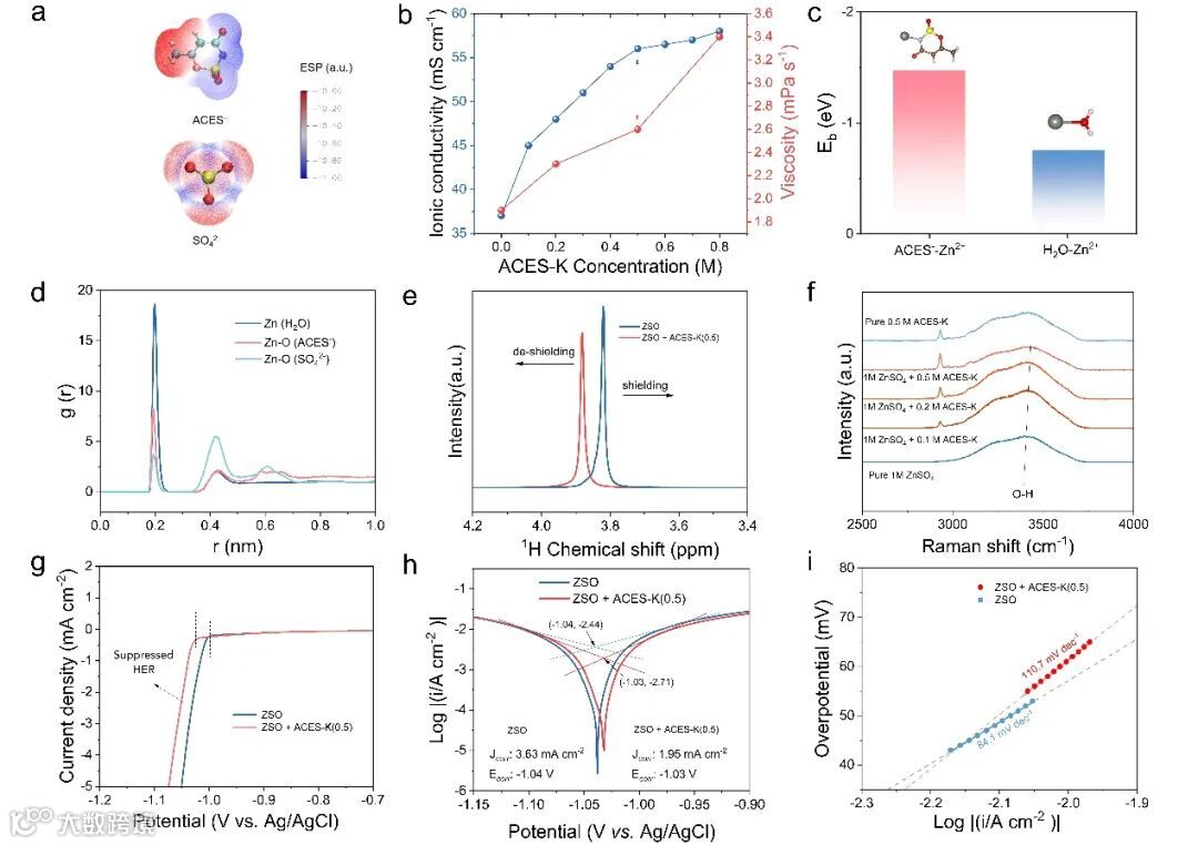 图 1 ACES-K 的引入对电解质物化性质以及对锌负极腐蚀性的影响