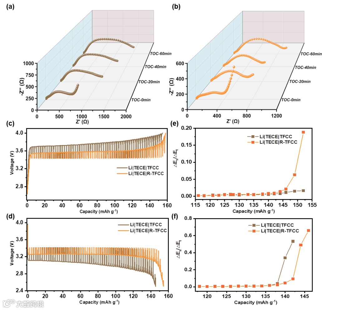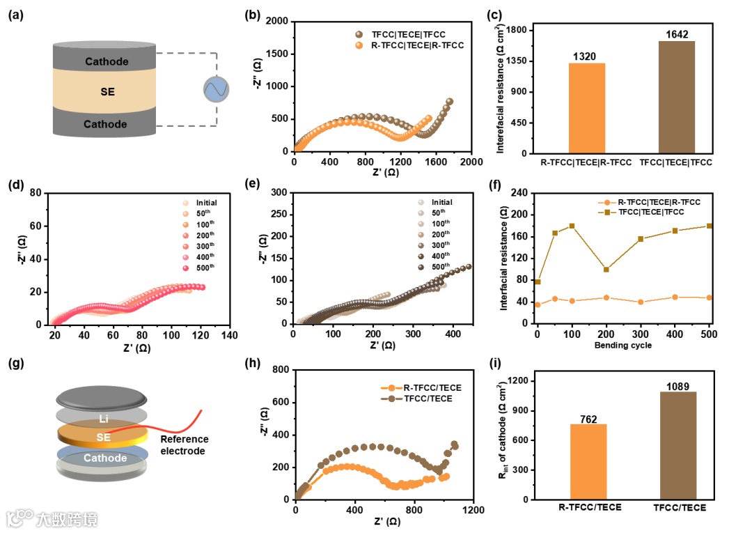 图3. 共价键合正极/SE界面阻抗降低的表征。