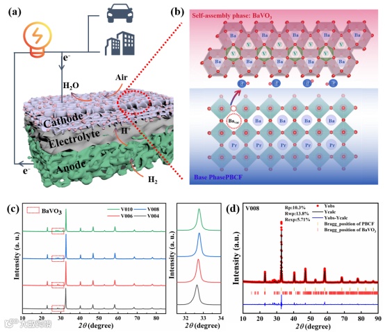 基于过渡金属钒元素辅助表面工程策略制备质子陶瓷燃料电池的异质结构阴极