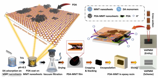 要点二:聚多巴胺(PDA)部分包覆 MMT 纳米片堆叠结构薄膜(PDA-MMT 薄膜)