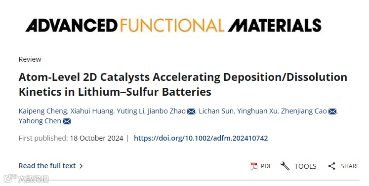 Cheng K.P. et al., Atom-Level 2D Catalysts Accelerating Deposition/Dissolution Kinetics in Lithium–Sulfur Batteries, Advanced Functional Materials, 2024.