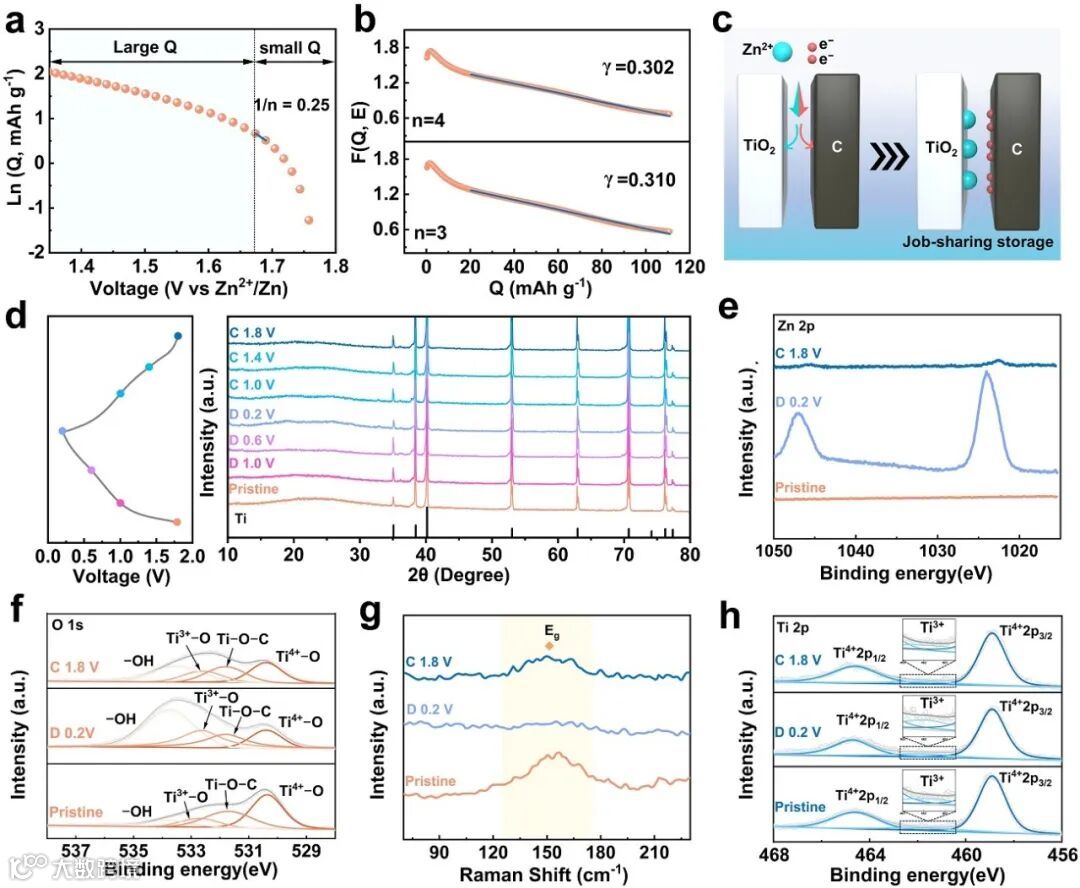 高安全、低成本的水系锌离子电池(AZIBs)是大规模储能应用的理想选择。然而,现有的正极材料(如钒基材料、锰基材料和普鲁士蓝类似物等)普遍存在动力学缓慢、易溶解和结构劣化等问题,这些问题严重制约了其在实际应用中的性能表现。大量研究表明,克服这些材料的固有缺陷仍然存在巨大的挑战。因此,转向开发新型且更具潜力的正极材料可能是推动AZIBs技术发展的一个有效策略。二氧化钛(TiO2)因其出色的化学稳定性、低成本及无毒特性,在能源和催化等多个领域得到了广泛应用。然而,将TiO2应用于AZIBs的正极材料尚未见报道。这主要是因为TiO2的晶体结构狭窄,对锌离子表现出较强的静电排斥作用。因此,探索并优化TiO2的结构及其表界面性质是实现其在AZIBs中应用的关键。