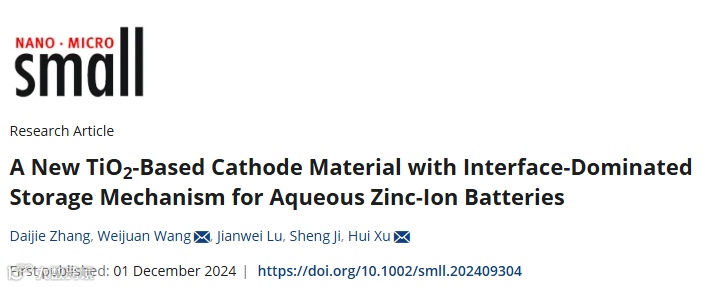 作为AZIBs正极时,该材料在1 A g-1的电流密度下实现了17000次的超长循环寿命。此外,这种以界面为主导的存储机制还被成功地拓展到其他的复合系统中,从而有效扩大了传统上被认为不适用于锌离子存储的材料的潜在应用范围。该项成果以“A New TiO2-Based Cathode Material with Interface-Dominated Storage Mechanism for Aqueous Zinc-Ion Batteries”为题在国际知名期刊Small上发表。本文的第一作者为江苏大学材料学院硕士研究生张代杰。