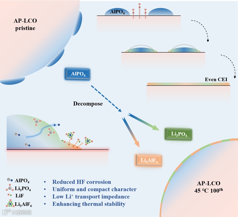 图8 AP-LCO的坚固CEI的化学和形貌演变示意图