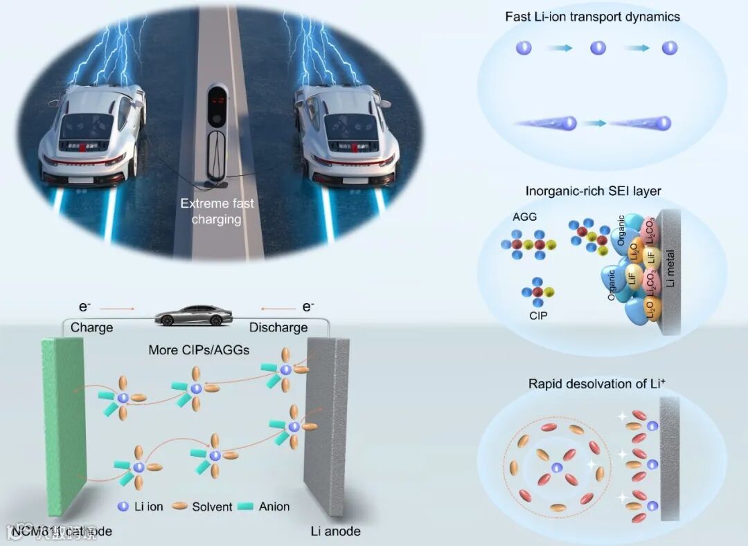 本研究通过引入功能性添加剂分子FMOP,将内层溶剂化鞘转变为锂离子和阴离子主导的结构,赋予了碳酸盐电解质所需的特性,显著改善了LMBs的循环寿命。这些发现为开发高能量密度锂金属电池提供了技术支持。