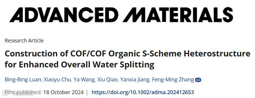 构建COF/COF S型异质结增强光催化全分解水