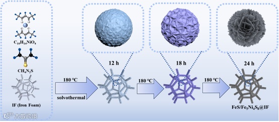 要点一:通过简单的溶剂热法,在铁泡沫表面原位生长了FeS/Fe5Ni4S8异质结构催化剂