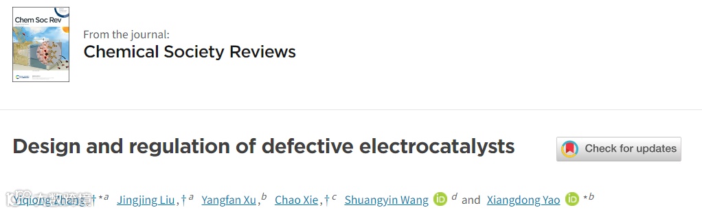 近日,来自长沙理工大学的张怡琼副教授与中山大学的姚向东教授合作,在国际知名期刊Chemical Society Reviews上发表题为“Design and regulation of defective electrocatalysts“的综述论文。该文章总结分析了最新缺陷电催化剂的分类、制备和表征方法,同时深入剖析了缺陷与性能间的构效关系以及缺陷电催化剂的发展应用,为开发高效缺陷电催化剂用于能源催化领域提供有价值参考。