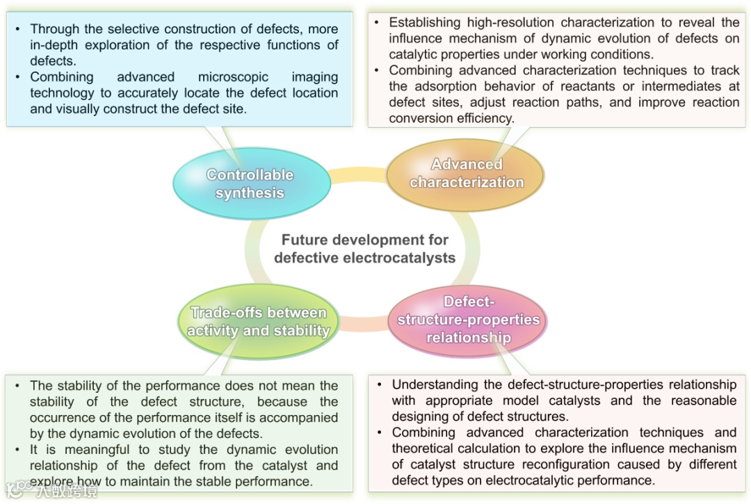 本文对缺陷电催化剂的设计与调控进行系统概述,主要综述了缺陷的分类、缺陷纳米材料的合成与表征、缺陷与电催化剂性能的内在关系以及缺陷电催化剂在各个催化领域的应用与发展。并对缺陷电催化剂的未来发展作者提出了几点思考,主要包含缺陷催化剂的可控合成、先进表征技术的开发、活性-稳定性之间的平衡以及缺陷-催化性能间的内在联系。