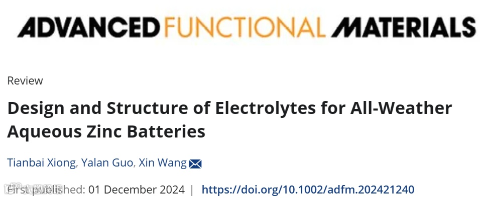 基于此,松山湖材料实验室王欣团队在 Advanced Functional Materials上发表题为“Design and Structure of Electrolytes for All-Weather Aqueous Zinc Batteries”的邀约综述文章,详细阐述和归纳了全天候水系锌电池电解质为满足高低温运行环境的不同策略及其异同,并从结构和设计的角度,分析不同策略的作用机理,对极端温度下运行的水系锌电池电解质策略提出了展望,并总结了最新的水系和非水系电池中的创新策略。