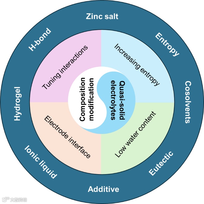 图3.全天候水系锌电池解决方案策略和原理