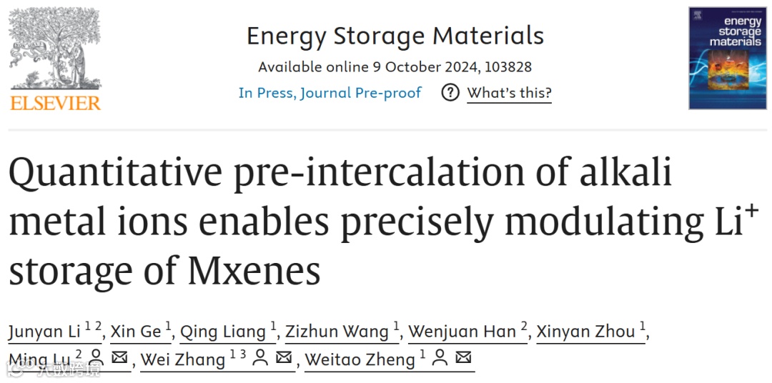 定量碱金属离子预嵌入精确调节MXenes的Li+储存
