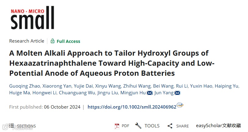 熔碱法定制六氮杂萘的羟基,以实现质子电池的高容量和低电位阳极