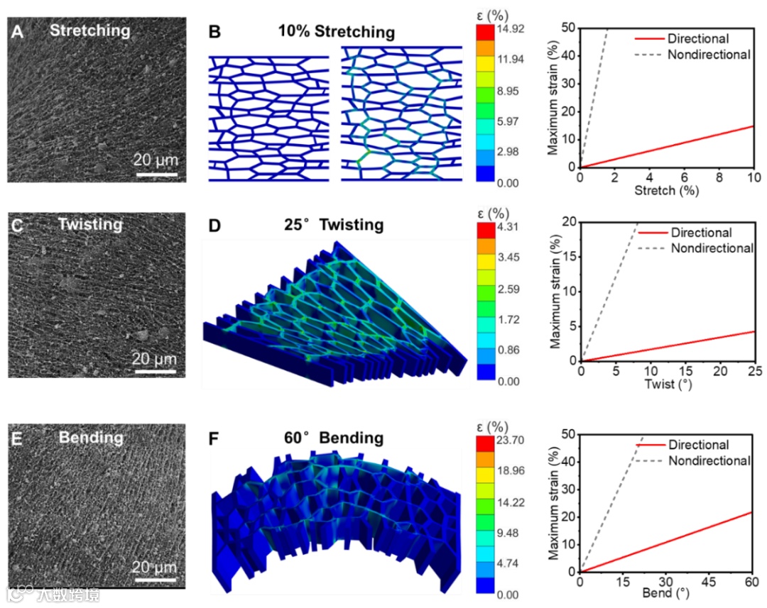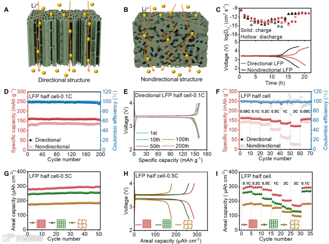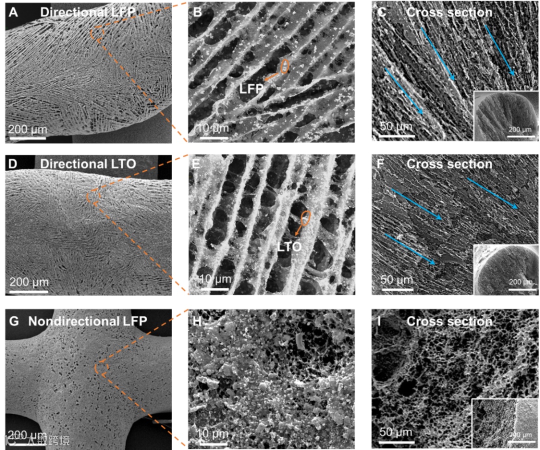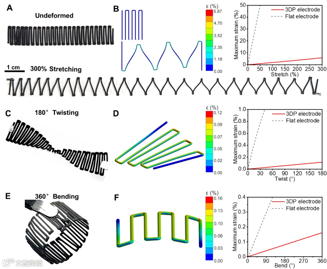 通过对电极的宏观与微观结构进行多尺度设计,提升其电化学性能与可变形能力。蛇形宏观结构方面优于其他结构可变形能力;微观层面,垂直定向孔结构较非定向孔结构显著提高了离子传输能力与电化学性能,同时在变形时保持结构稳定性。