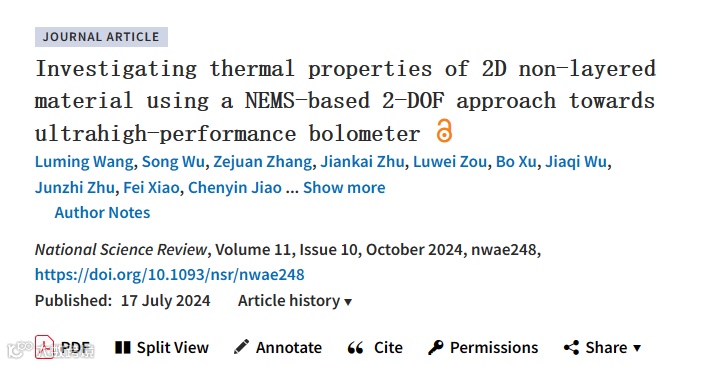 电子科技大学王曾晖、夏娟、朱健凯等National Science Review | 研究二维非层状材料热性能,迈向高性能光热辐射计
