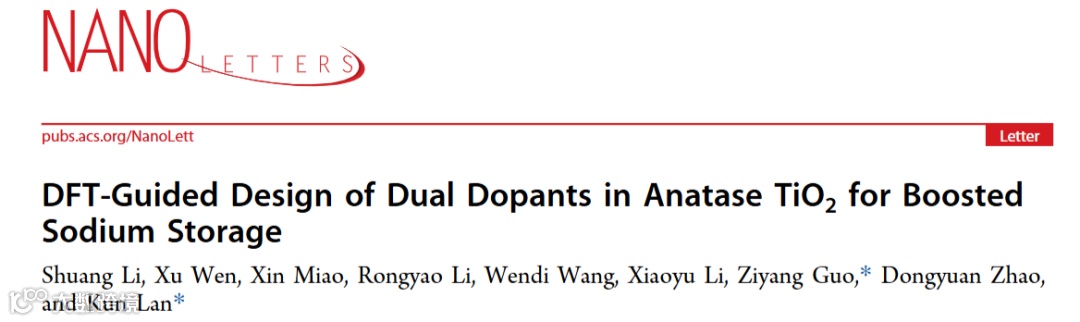 DFT指导设计双掺杂锐钛矿TiO2提升储钠性能