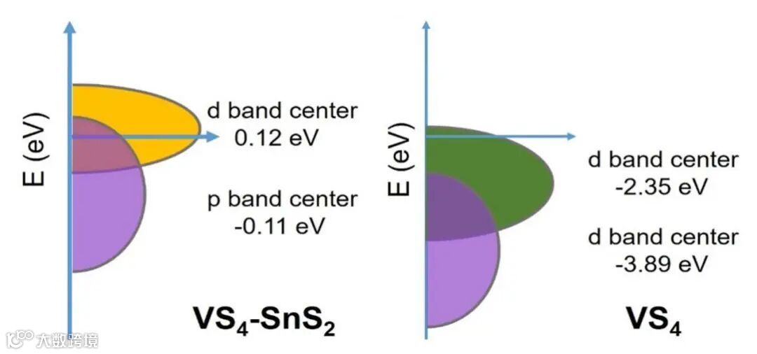 图3:(a)VS4-SnS2,(b)VS4催化剂的 d-p 带中心示意图