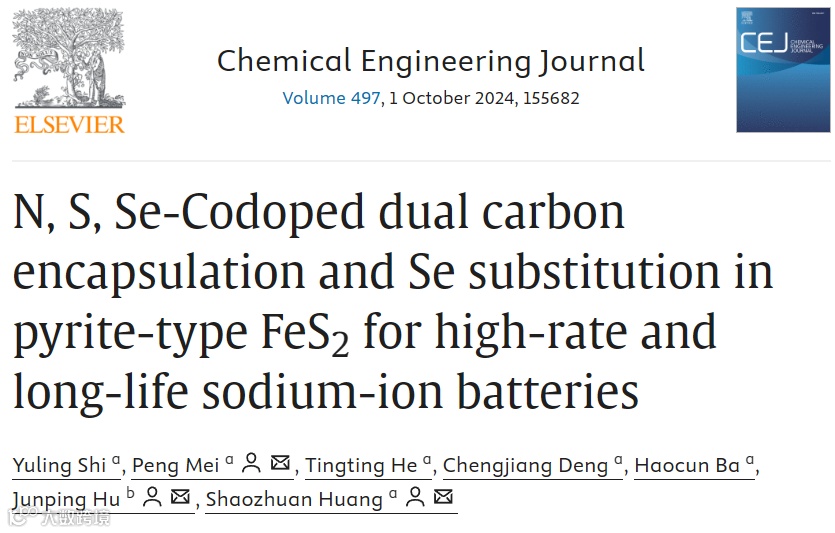N, S, Se共掺杂双碳封装和Se取代黄铁矿型FeS2用于高倍率和长寿命钠离子电池