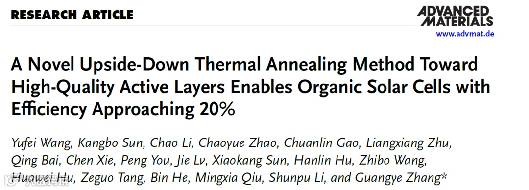 新颖的倒置热退火工艺制备高质量活性层使有机太阳电池的效率接近20%