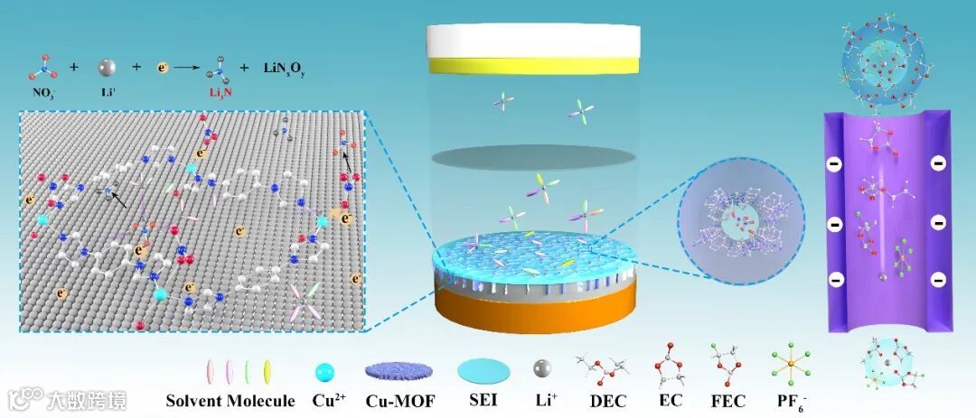 图1. Cu-MOF加速Li+传输层的工作机理图示。