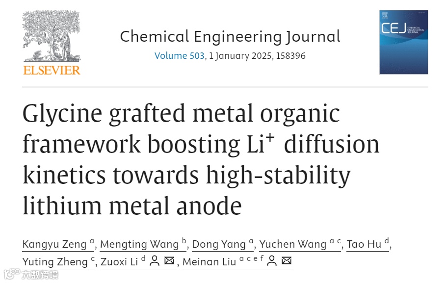 通过甘氨酸修饰的MOF在Li金属负极表面构建加速Li+传输动力学的富含Li3N的SEI