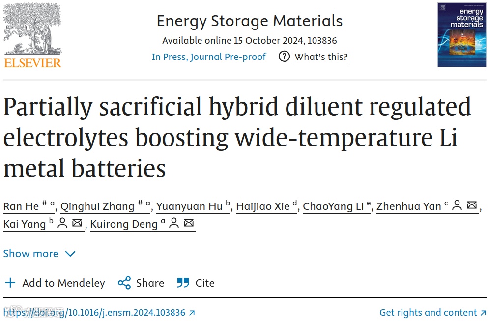 部分牺牲型混合稀释剂策略调控局部高浓度电解液提升锂金属电池宽温性能