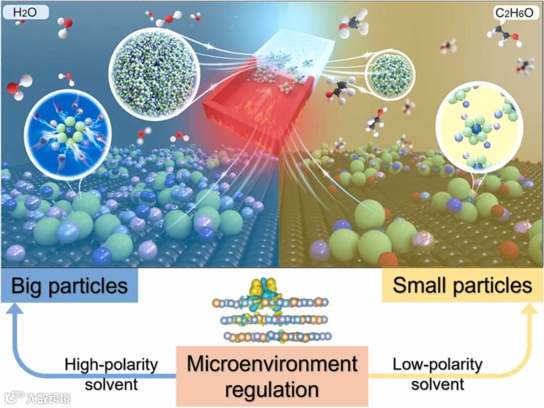 研究发现,通过使用低极性乙醇替代高极性水作为前驱体溶剂,可以显著减小HEA纳米颗粒的尺寸,最终将颗粒控制在2.68纳米,从而暴露更多活性位点以增强催化性能。
