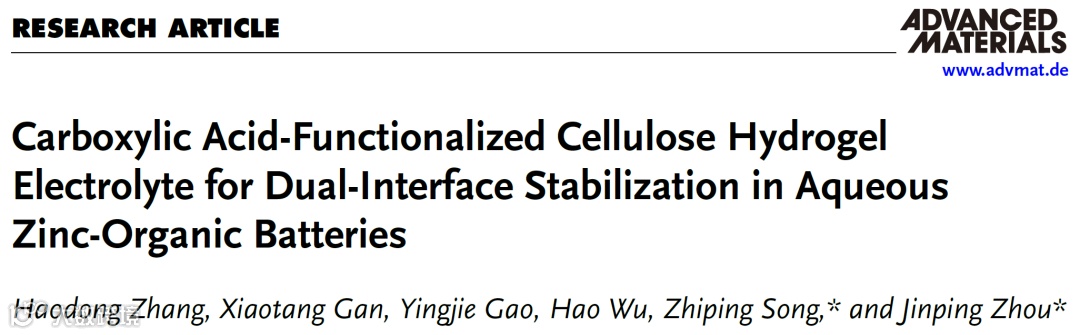 羧酸化纤维素水凝胶电解质助力双界面稳定水系锌–有机电池