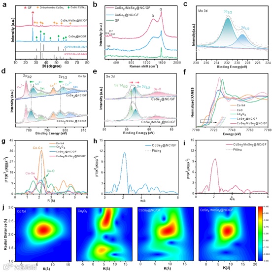 图3. CoSe2/MoSe2@NC/GF的化学成分和结构性质分析。