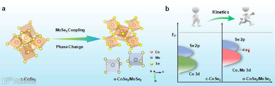 图1. CoSe2/MoSe2中异界面耦合诱导的CoSe2相变示意图。