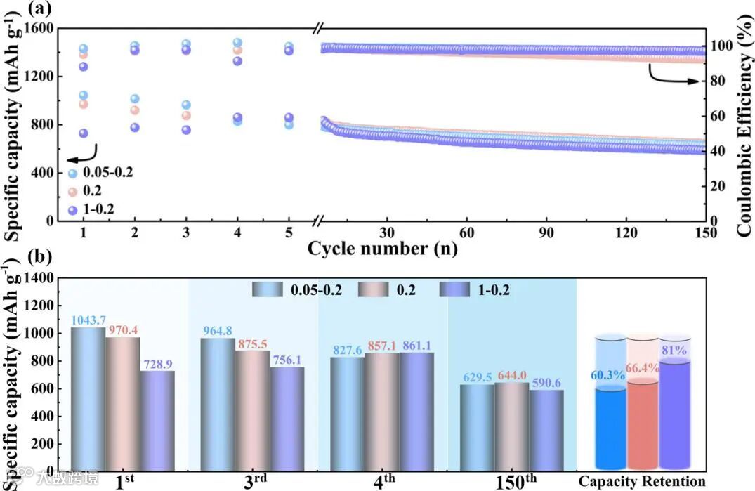 图1.(a)0.05、0.2和1-电池的长循环性能。(b)不同状态下的电化学性能比较。