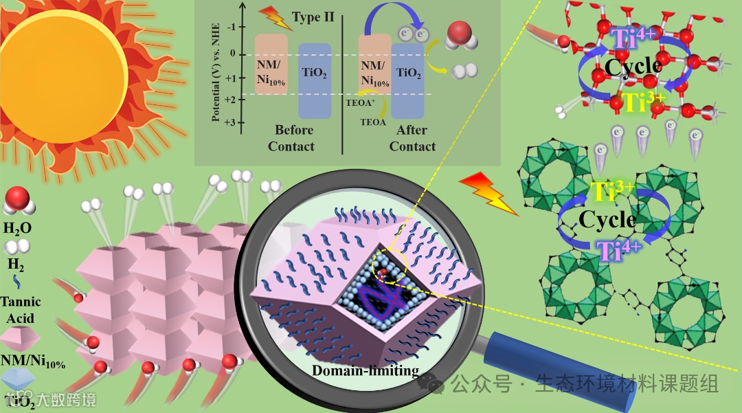 图1 TiO2@NM/Ni10%中空双壳异质结的电荷转移和光催化氢机制。