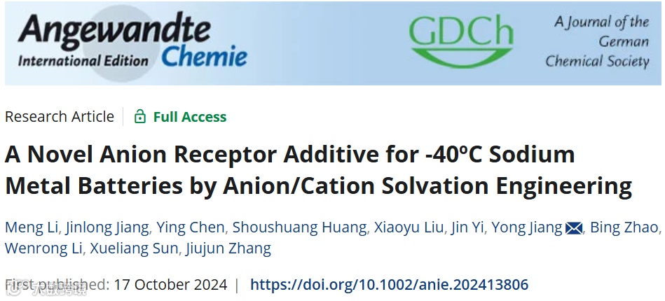 一种新型阴离子受体添加剂通过阴/阳离子溶剂化工程用于-40°C钠金属电池
