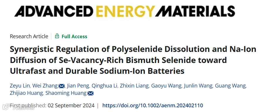 杭高院黄少铭&广工张伟发表Advanced Energy Materials:协同调节多硒化物溶解和富含Se空位的硒化铋中的钠离子扩散以实现超快、耐用的钠离子电池