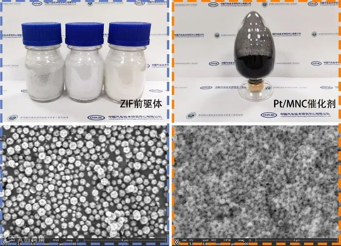 基于实验室研究成果进行催化剂小试生产,其中,ZIF前驱体单批次产量超过100g,碳载体及催化剂单批次产量超过10g。放大生产之后,所得碳载体平均粒径为300nm,尺寸较为均匀,比表面积超过1500m2/g。所得Pt基催化剂中Pt纳米颗粒的平均粒径约为2.5nm,在旋转圆盘电极测试和单电池测试中,其ORR催化活性未出现衰减现象。同时,在ZIF合成中,通过调控ZIF合成溶液中不同离子的占比,可以得到具有不同杂原子掺杂的碳载体前驱体,这为催化剂元素组成和活性位结构的精细调控提供了基础。