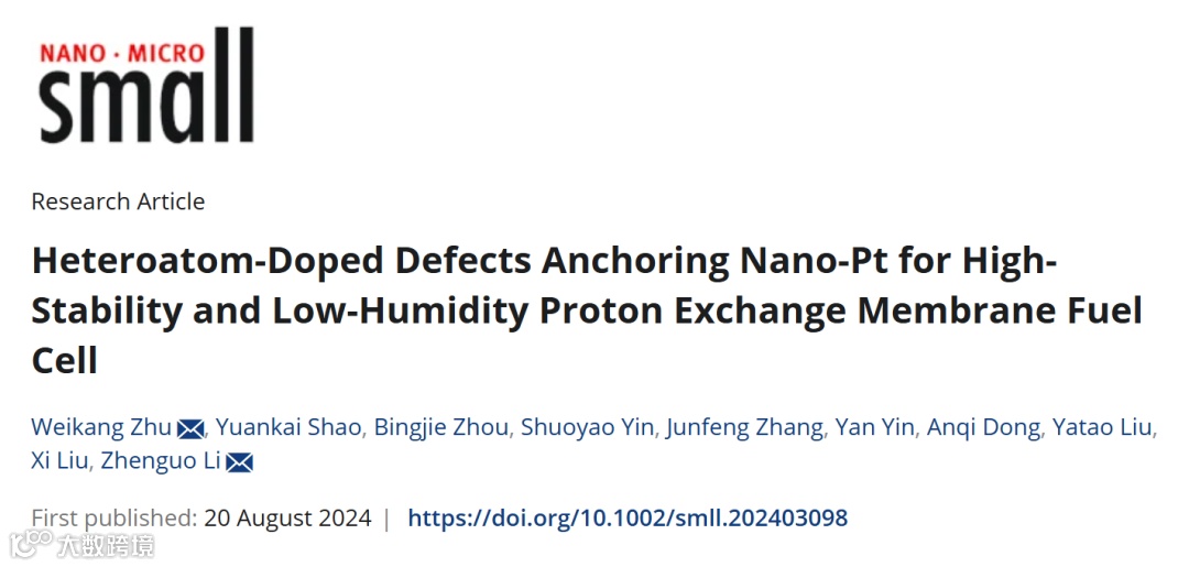 中汽中心李振国团队《Small》:杂原子掺杂碳缺陷锚定nano-Pt提高极端干燥条件下PEMFC耐久性