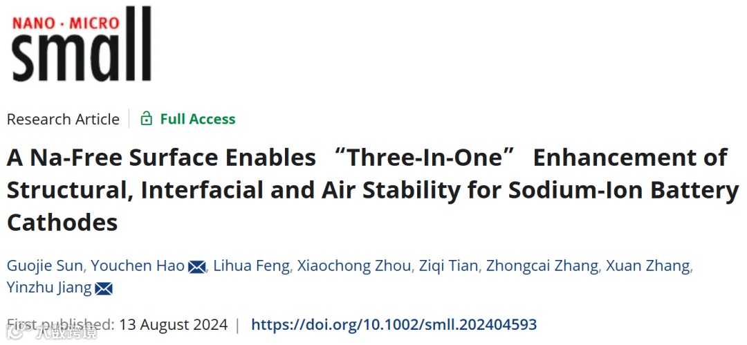 近日,来自浙江大学的姜银珠教授团队在国际知名期刊Small上发表题为“A Na-Free Surface Enables “Three-In-One” Enhancement of Structural, Interfacial and Air Stability for Sodium-Ion Battery Cathodes”的研究文章。该研究文章通过氧化物材料表层高稳定性岩盐相结构的设计抑制了其表面向体相扩散的结构劣化,同时无钠表面调控了界面CEI的生长,实现了正极材料循环稳定性的提升。此外,无钠岩盐界面也阻止了湿空气下H+/Na+交换过程,显著提高了材料的空气稳定性。