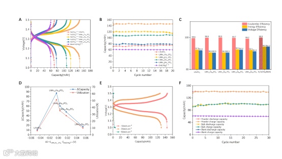 图1.[Fe(CN)6]3-/4--LiMnxFe1-xPO4/Zn 靶向体系的电化学性质