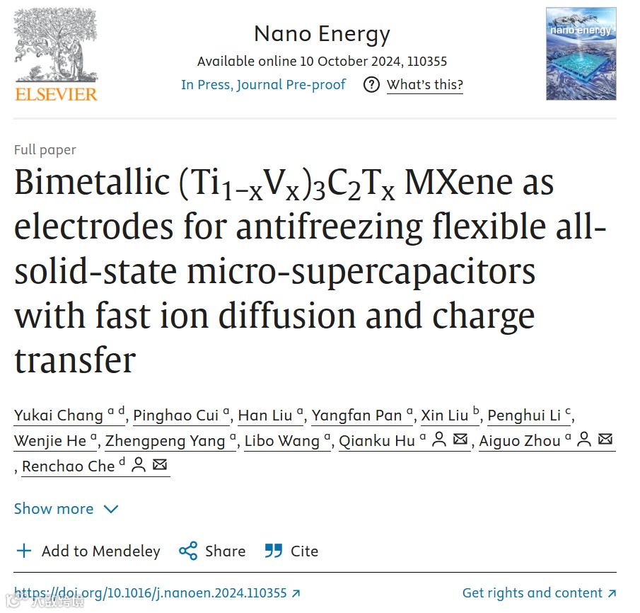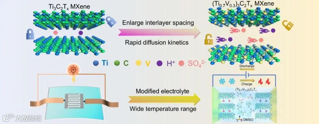 双金属(Ti1−xVx)3C2Tx MXene作为电极材料构建具有快速离子扩散和电荷转移的抗冻柔性全固态微型超级电容器