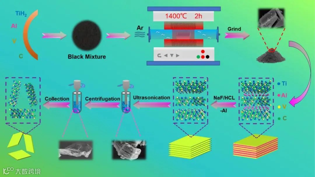 图1. 双金属(Ti1−xVx)3C2Tx MXene的制备